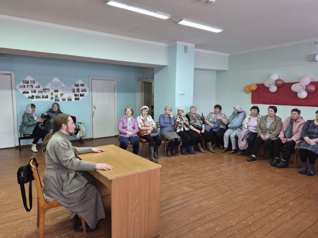 Батюшка рассказал собравшимся о предстоящих церковных праздниках, их смысле и традициях. После этого жители смогли задать вопросы, которые их интересовали.