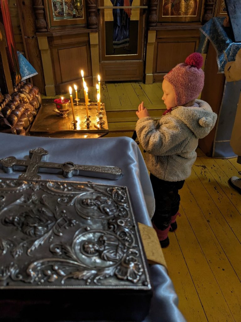 Поэтому праздничная служба переплетается с с богослужебными текстами Страстной седмицы.