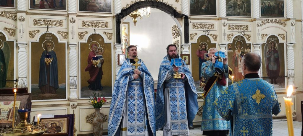 Сегодня в храме Святителя Николая Чудотворца села Завьялово состоялась Божественная Литургия, за которой читалось Евангелие от Матфея (24:36-26:2) о беседе Господа с учениками на горе Елеонской.