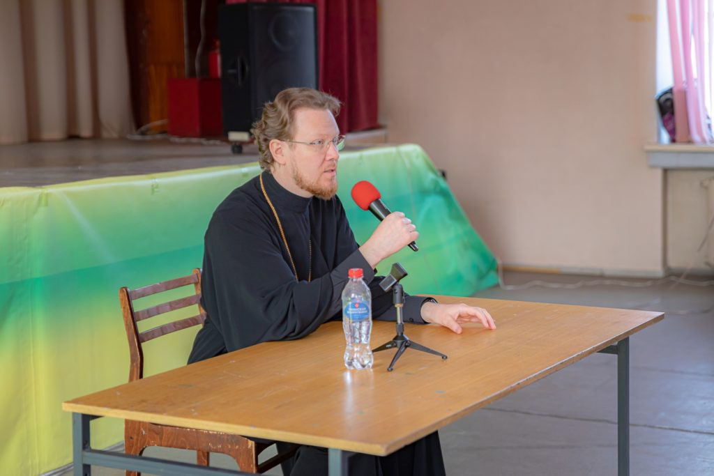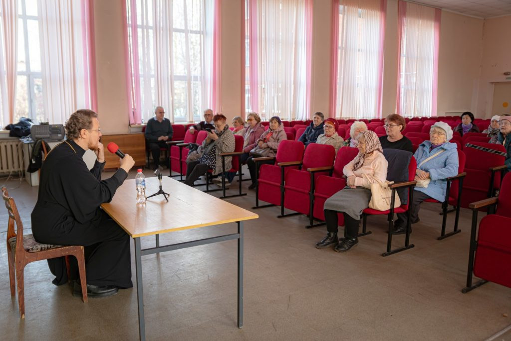 В предпасхальной беседе протоиерей Роман провёл присутствующих через череду последних дней земной жизни Христа: от входа Господня в Иерусалим до Воскресения Христова. Притча о десяти девах и духовной бдительности, покаяние грешницы, возлившей драгоценное миро, Христос, умывающий ноги ученикам – священник просто и образно показал евангельские события, объясняя их духовный смысл.
