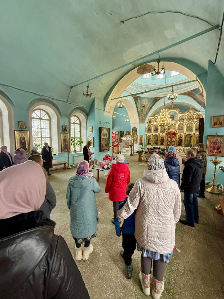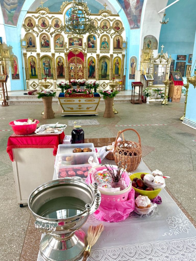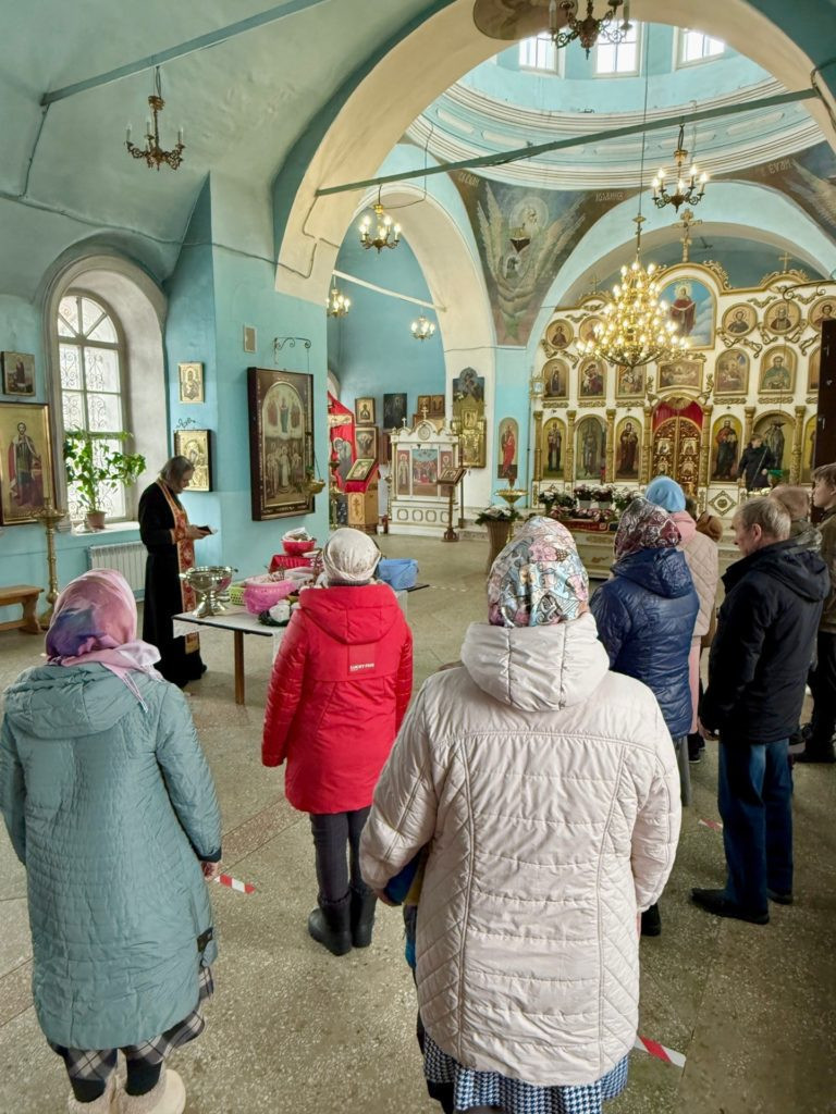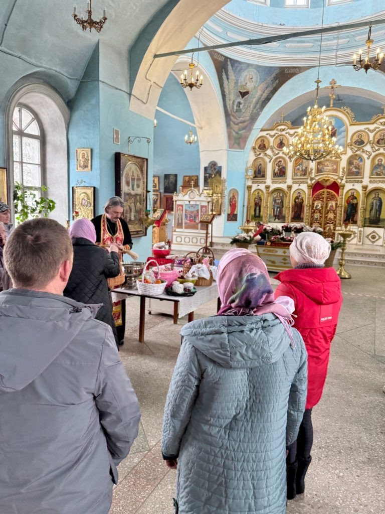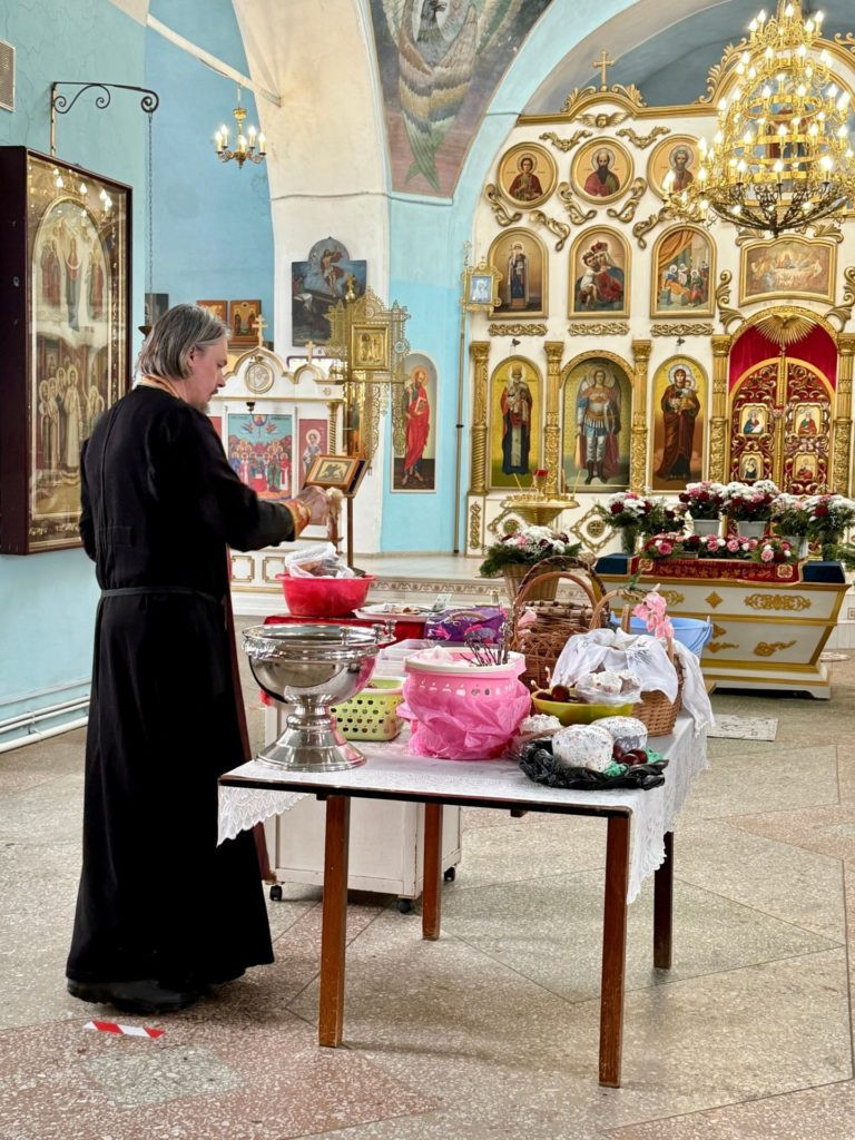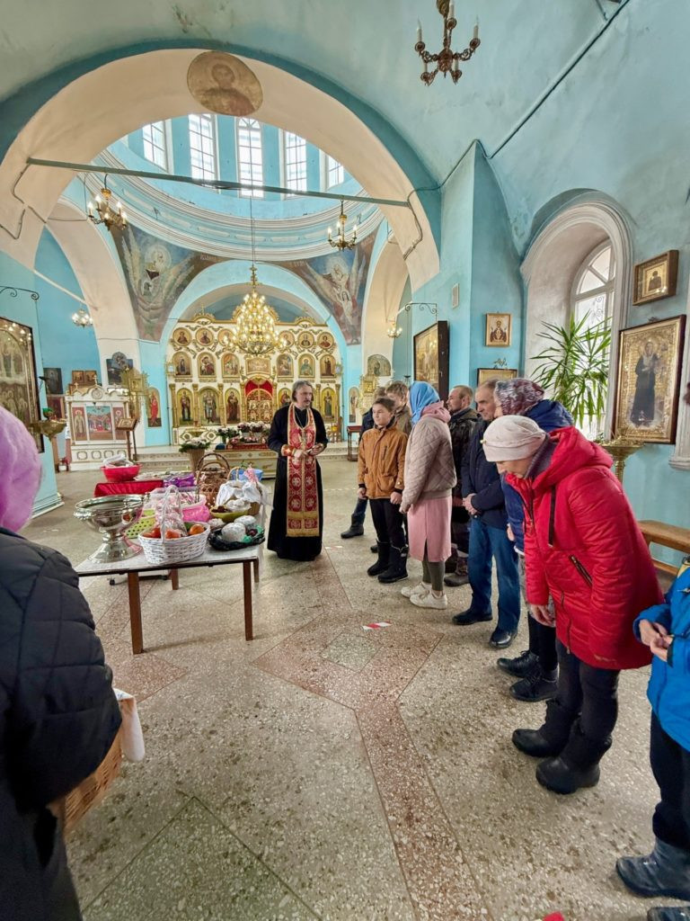 Сегодня в определенные часы в храме Покрова Пресвятой Богородицы проходило освящение куличей, яиц и других пасхальных яств — это благочестивая традиция, а не строго обязательное действие.