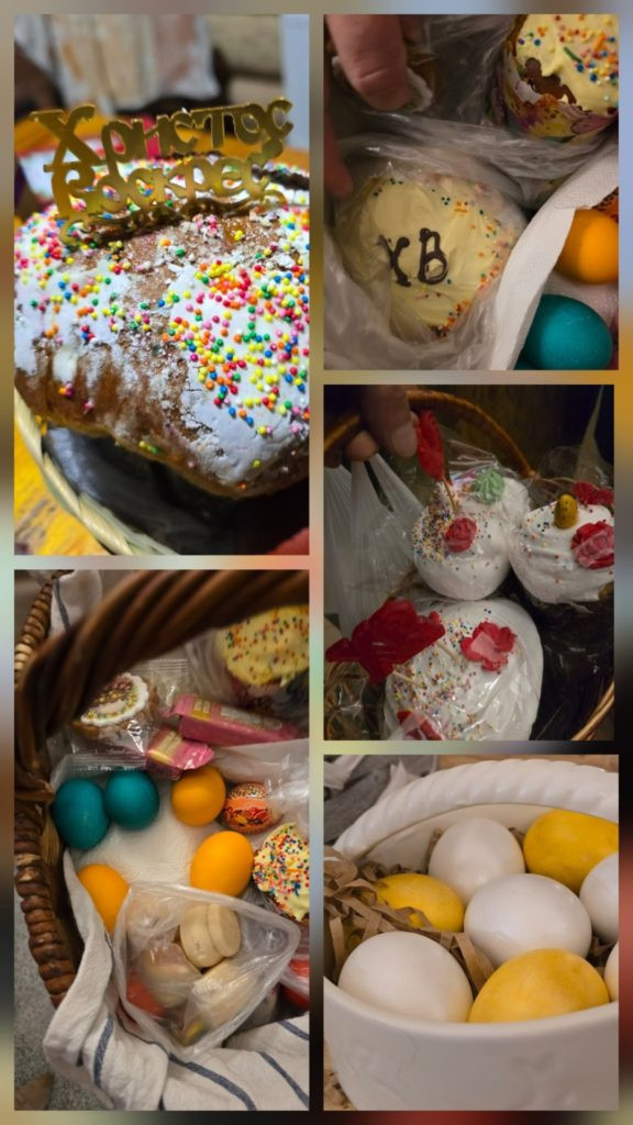 После этих слов отец Иаков освятил пасхальные угощения: куличи, яйца и пасхи.