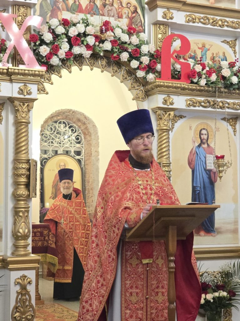 Сегодняшняя праздничная Божественная литургия была особенной. Ее возглавил настоятель храма иерей Иаков Зайцев, которому сослужил иерей Александр Зайцев. В алтаре им помогали верные служители: Константин, Григорий, Георгий и Артемий. Небесные песнопения, наполняющие храм радостью, исполнил клиросный хор под руководством Батальцевой Софии и Замятиной Евгении, чьи голоса вместе с их помощниками возносили хвалу Воскресшему Христу.