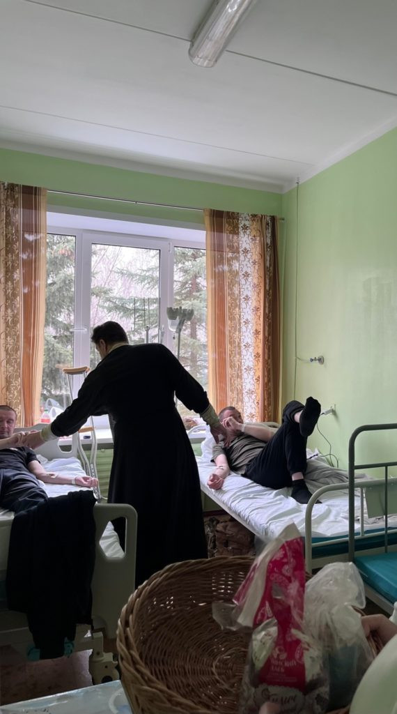 Настоятель больничного храма священник Богдан Пильо посетил военнослужащих — участников СВО, проходящих реабилитацию после ранений, и разделил с ними пасхальную радость.