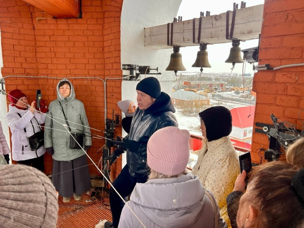 Продолжив свое путешествие паломники отправились в особое место на карте Удмуртии – Ризположенский женский монастырь. Там был передан Благодатный огонь и проведен торжественный молебен. А далее, мы отведали наваристую уху по -монастырски! На свежем воздухе — подкрепившись, группа за группой поднимались на колокольню, для участия в образовательной части нашей экскурсии – мастер-классу по колокольному звону под руководством профессионального звонаря и преподавателя Григория Олеговича Арасланова, послушника Русского на Афоне Свято-Пантелеимонового монастыря. Не даром наш тур получил название «Колокольный звон».