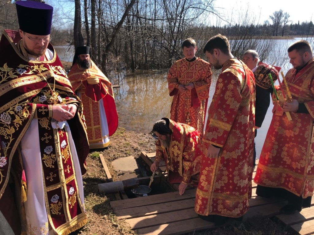 Сегодня на нашем подворье состоялась Божественная литургия архиерейским чином. По окончании Богослужения духовенство и прихожане прошли крестным ходом на источник преподобного Трифона Вятского, где владыка Викторин освятил воду.