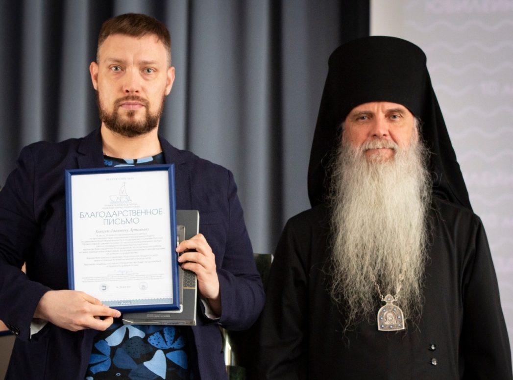 По итогам форума состоялось награждение. Алексей Артемьев получил благодарственное письмо от епископа Мефодия и памятные подарки.
