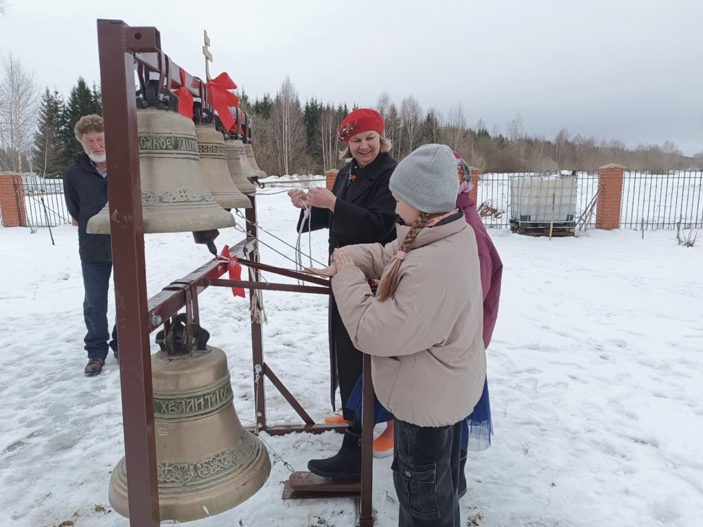 Почти сто лет не раздавался над этими окрестностями колокольный звон. Целых три поколения были лишены радости вековой традиции, когда в дни главного праздника — на Пасху — любой желающий мог подняться на колокольню и благовестить. И вот, благодаря переносной звоннице, которую соорудили накануне праздника, это стало возможным!