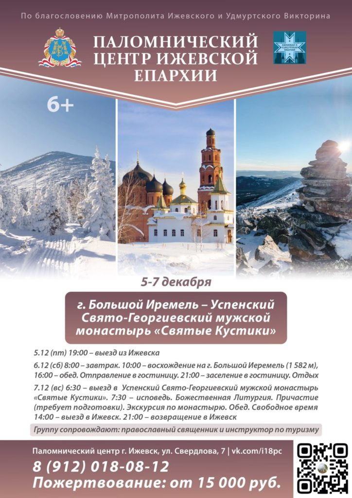 Вас ждёт удивительный двухдневный маршрут: Ижевск- гора Большой Иремель (восхождение) — Успенский Свято-Георгиевский мужской монастырь «Святые Кустики». Это уникальная возможность испытать себя физически, позаботиться о душе, испытать бурю эмоций и наполнить сердце новыми впечатлениями!