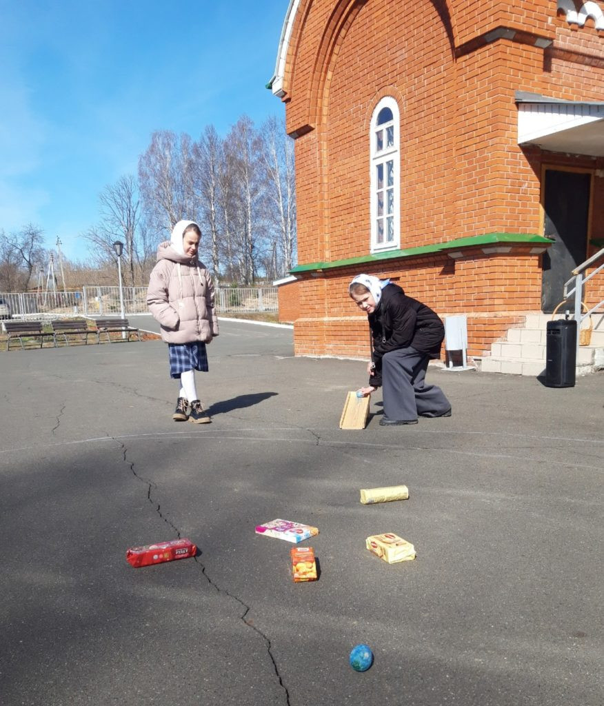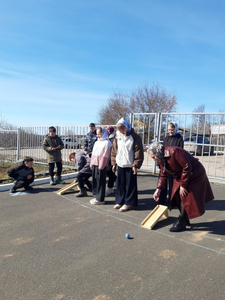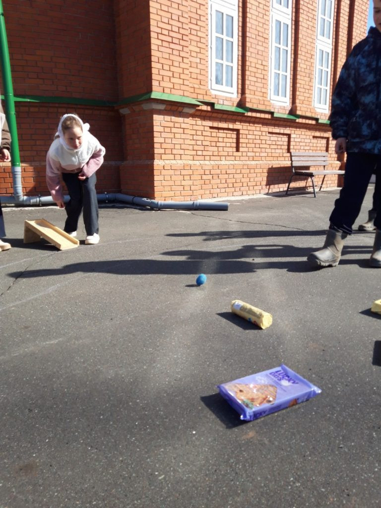 После серьёзного разговора ребят ждали пасхальные игры — традиционные забавы, которые на Руси всегда сопровождали светлые дни. Дети с азартом и радостью играли, ощущая себя частью большой православной традиции. Завершилась встреча угощением освящёнными куличами, которые школьники с благодарностью приняли как пасхальный дар.