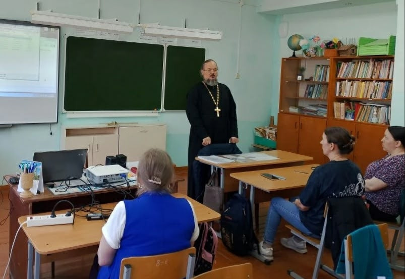 Для лучшего понимания родителями целей и содержания курса отец Виталий представил вниманию собравшихся видеоролик об учебном предмете «Основы православной культуры». После просмотра священник ответил на вопросы родителей, развеял возможные опасения и отметил, что выбор модуля – добровольное решение семьи, но знакомство с православной культурой помогает детям лучше понимать историю, литературу и искусство России.