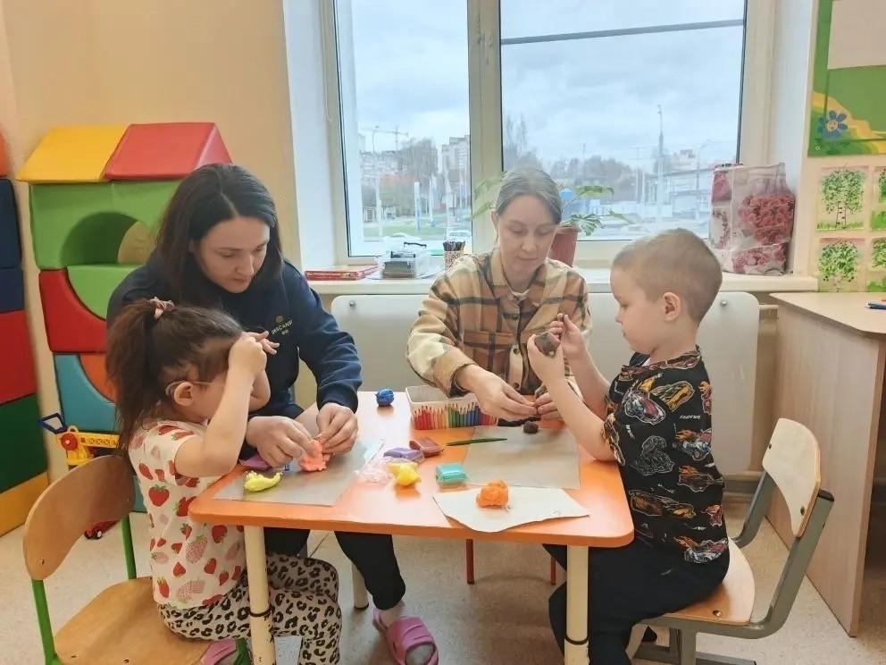 Они принесли детям наборы для творчества — воздушный пластилин, цветную бумагу, фигурки животных и яркие фрукты. Вместе с мамами ребята с энтузиазмом создавали свои первые поделки — прекрасные розочки.