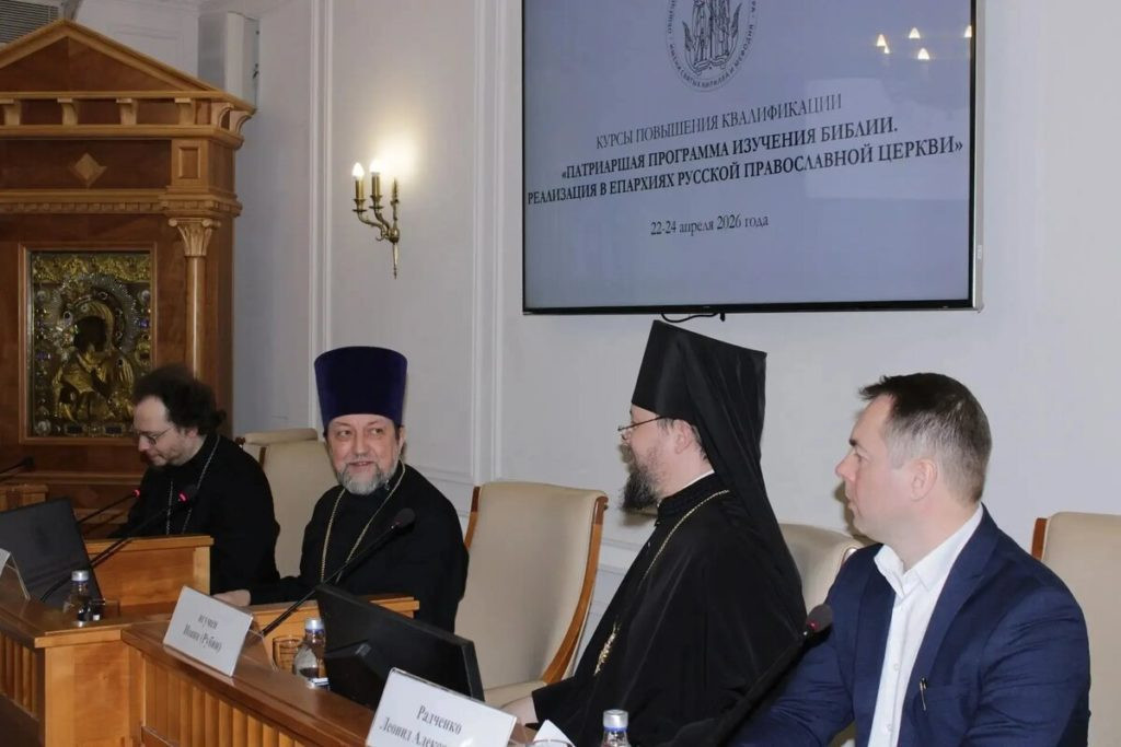 С 22 по 24 апреля 2026 года в Общецерковной аспирантуре и докторантуре имени святых Кирилла и Мефодия прошли курсы повышения квалификации для ответственных за реализацию Патриаршей программы изучения Библии. Мероприятие собрало 83 представителя из 67 епархий Русской Православной Церкви. В числе участников была делегация Сарапульской епархии во главе с епископом Сарапульским и Можгинским Павлом, который выступил перед собравшимися с докладом.