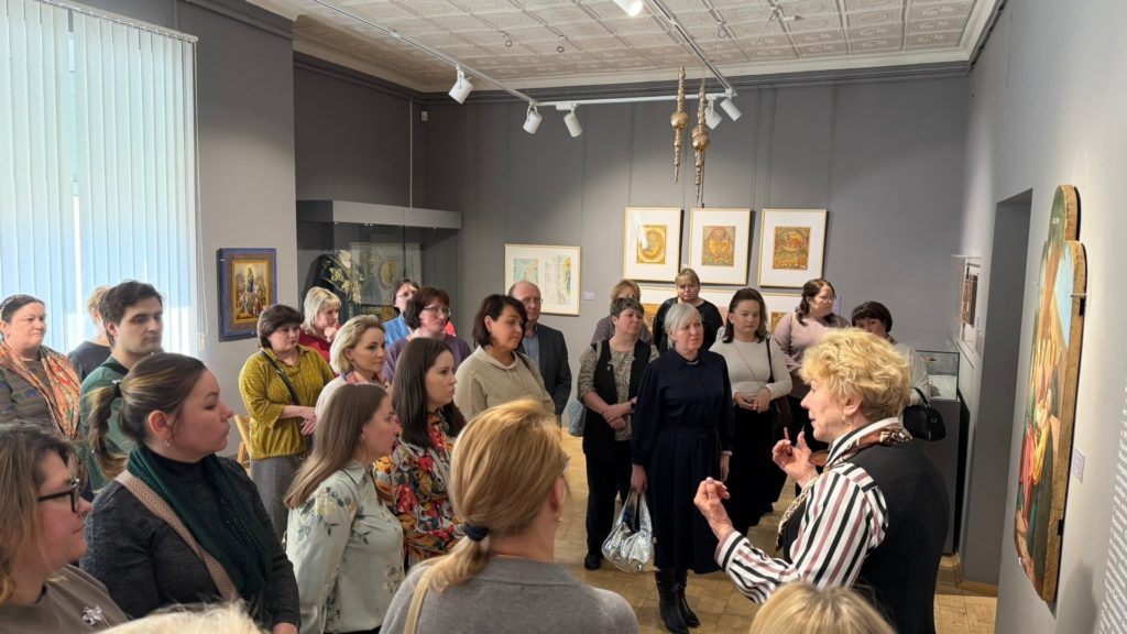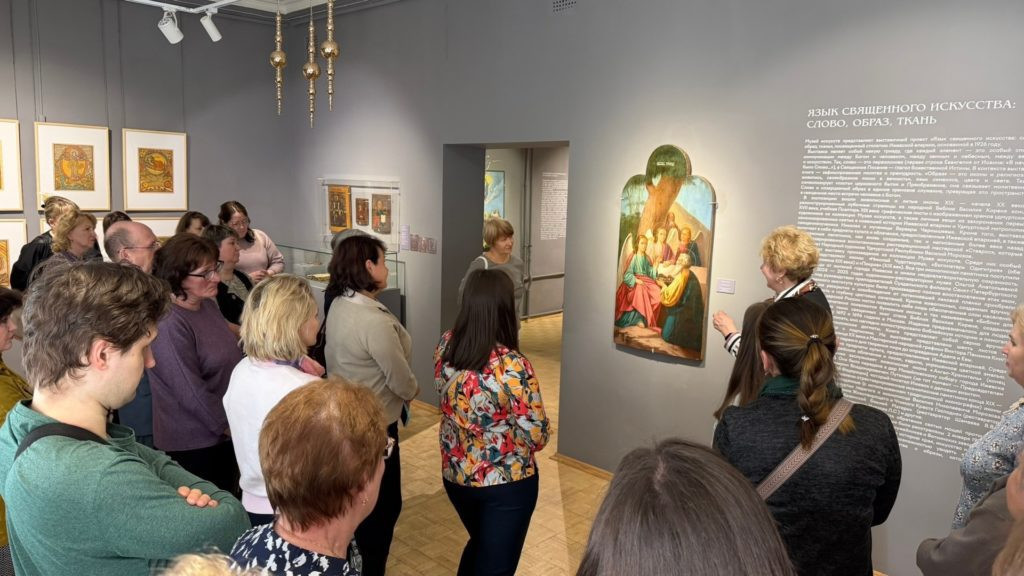 По прибытии в Ижевск паломники посетили экспозицию «Язык священного искусства: слово, образ, ткань», приуроченную к 100-летию Ижевской епархии, в Удмуртском республиканском музее изобразительных искусств. Экскурсовод Надежда Петровна Кузнецова с большим энтузиазмом и заинтересованностью познакомила посетителей с экспонатами выставки.