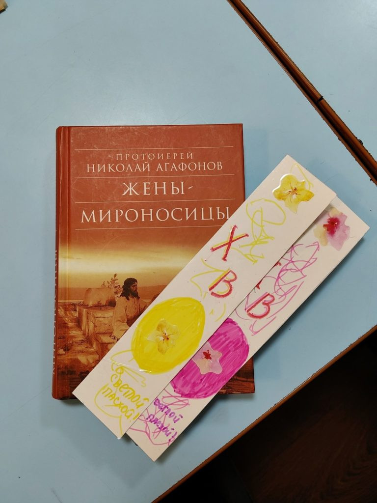 Встреча состоялась накануне Недели святых жён-мироносиц (третье воскресенье после Пасхи). Поэтому участницы читательского клуба получили небольшие, но очень сердечные подарки: книгу «Жизнь как жертва. Книга о русских женщинах» и красивые закладки, которые изготовила самая юная читательница клуба. Эти знаки внимания стали тёплым дополнением к душевной беседе.