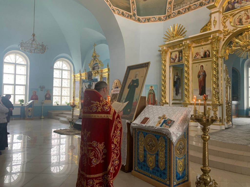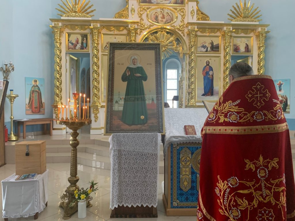 В субботу, накануне Недели жён-мироносиц, храм наполнился особой радостью и благодатью: на приход привезли икону с частицей мощей блаженной старицы Матроны Московской. В честь этого знаменательного события настоятель храма совершил торжественный молебен.