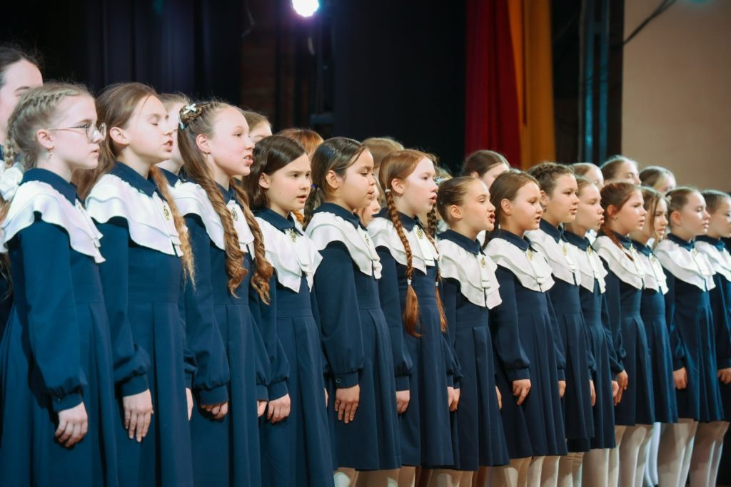 После выступления Ольги Александровны на сцену вышел сводный хор девочек — участниц проекта из нескольких школ Ижевска. Юные гостьи исполнили гимн православных женщин.