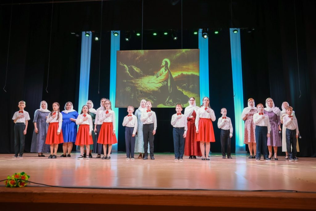 Младший состав школы подготовил поэтическую композицию «Венок для Христа»: дети читали стихи о весенних цветах и символически преобразили терновый венец Спасителя в прекрасный венок, прославляя победу жизни над смертью. А в исполнении семейной аудитории прозвучала песня «Аллилуйя».